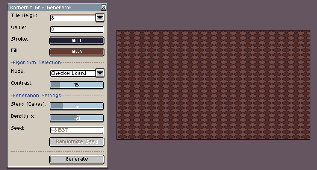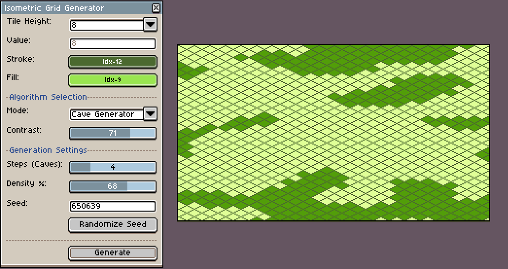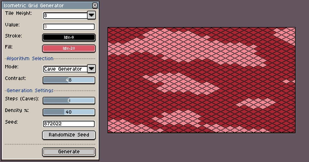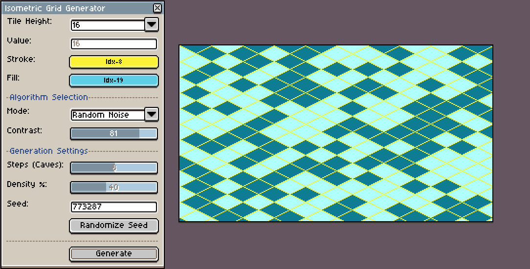 A Lua script for Aseprite designed for the rapid generation of isometric grids and procedural patterns.